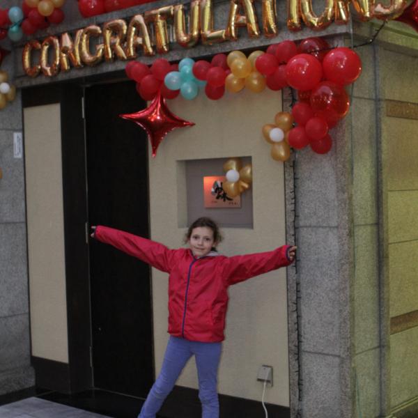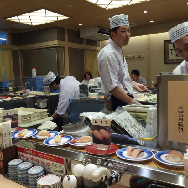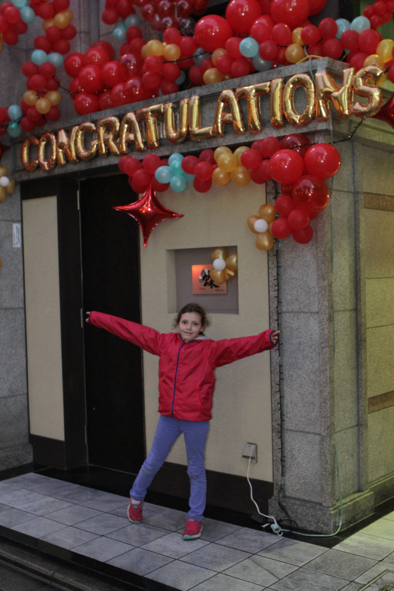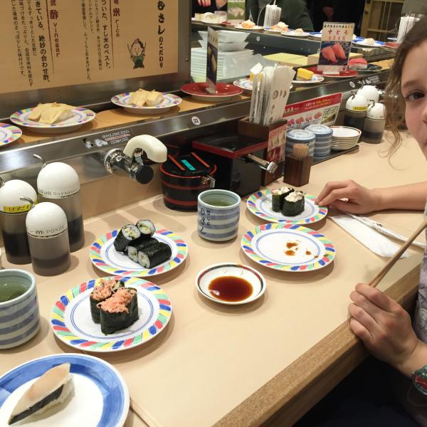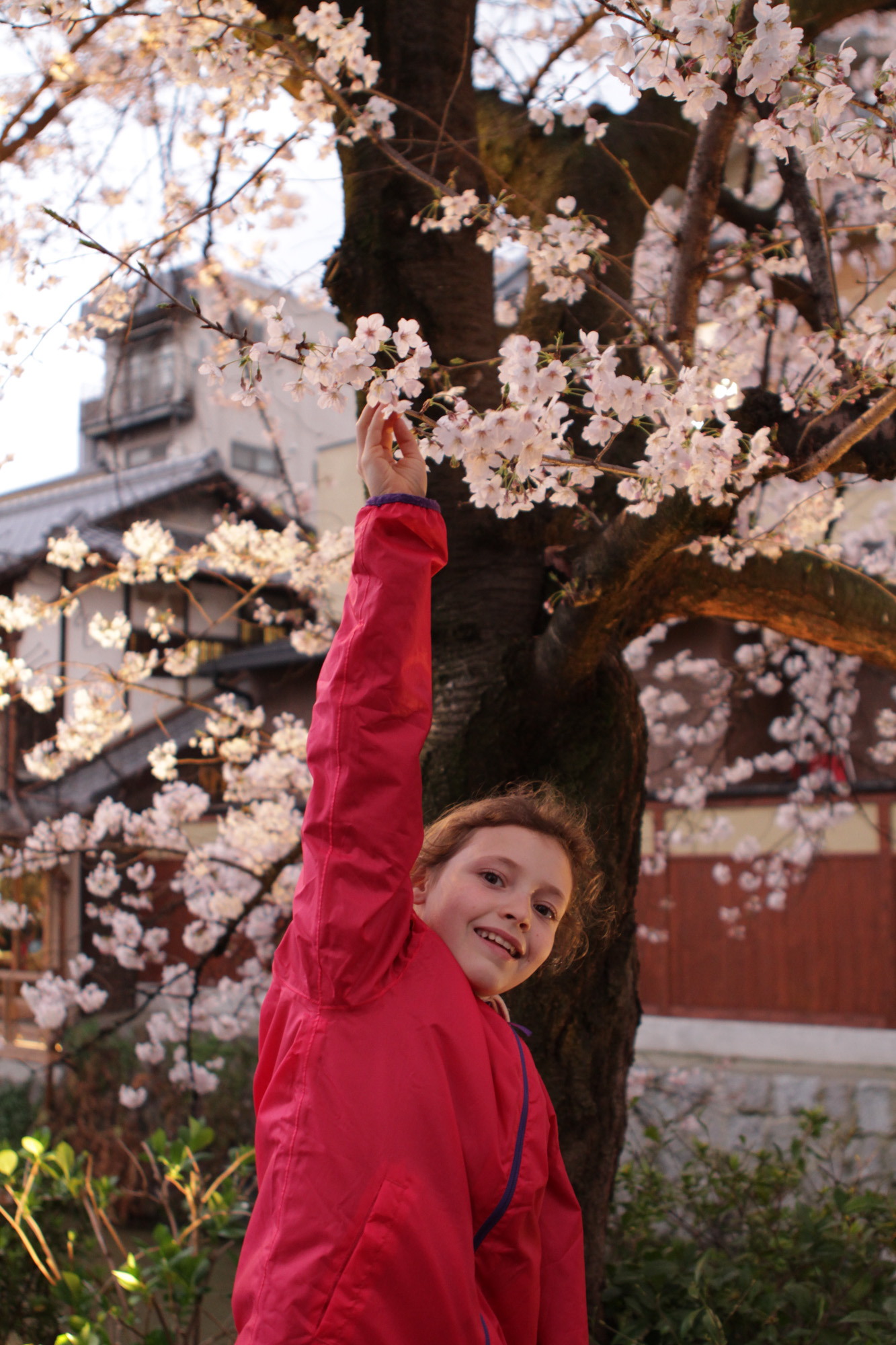 On a vu plein de sakura, de temples, de lanternes, et de dames en kimono. On est allés dans un café, j’ai pris un jus de mangue et on a fait des photos avec un nounours sur une chaise. Quand Aya nous a quittés, on a été manger des sushis dans un kaitenzushi.
