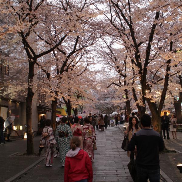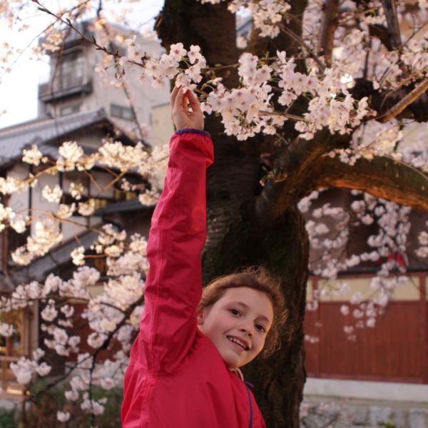 Les sakura arrivent à l'apogée de leur floraison, ils ponctuent la ville, les chemins, les routes et les montagnes de touches colorées. Dès que le vent souffle, des milliers de pétales s’envolent, recouvrent le sol et la surface des cours d’eau. C’est saisissant.