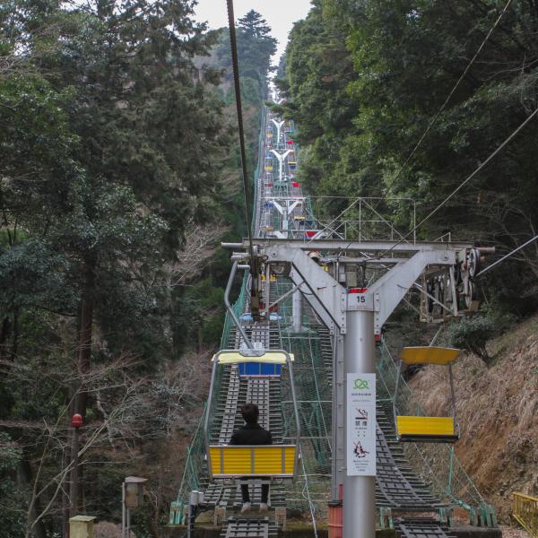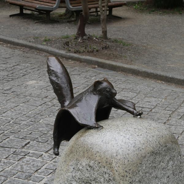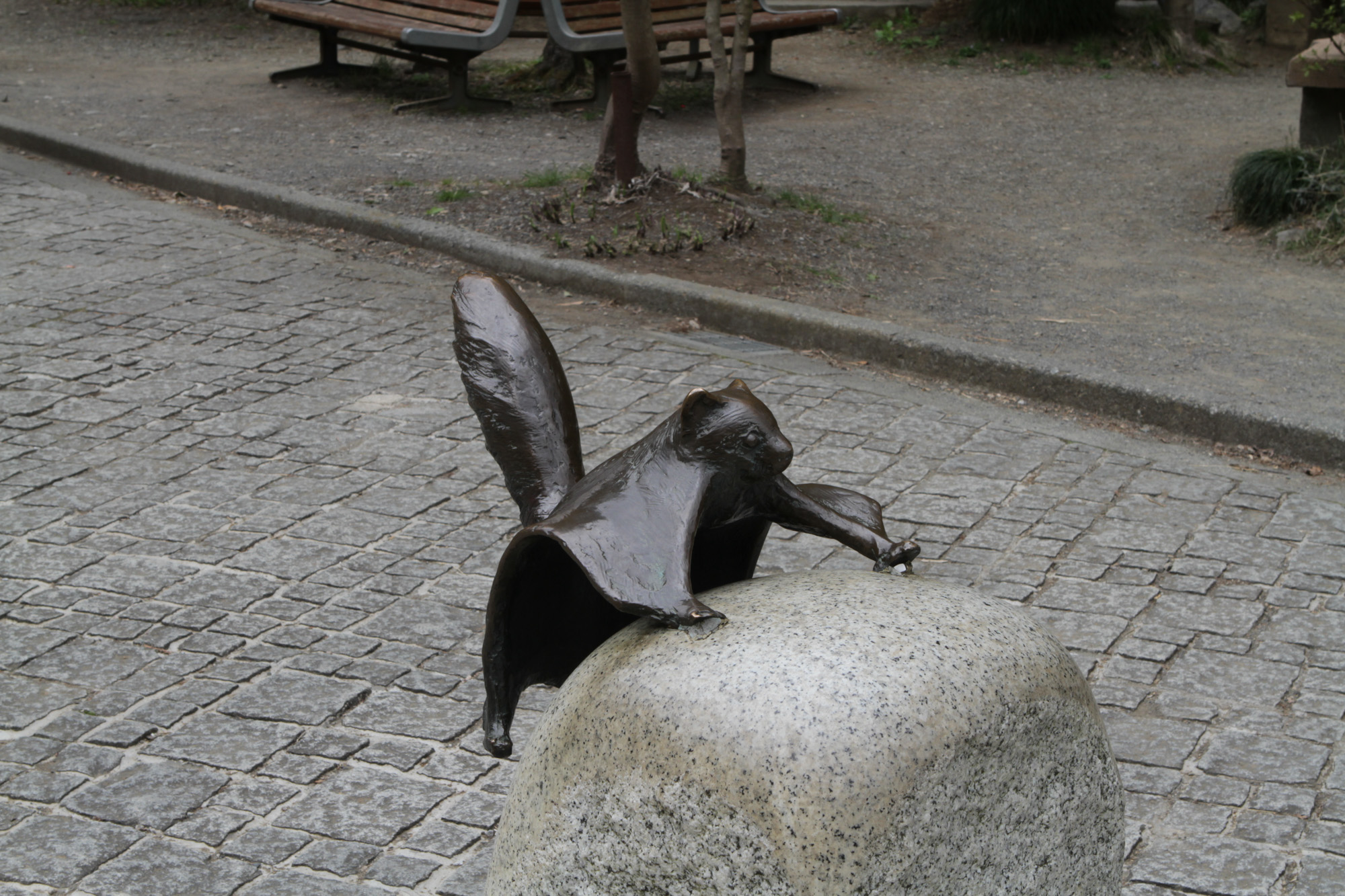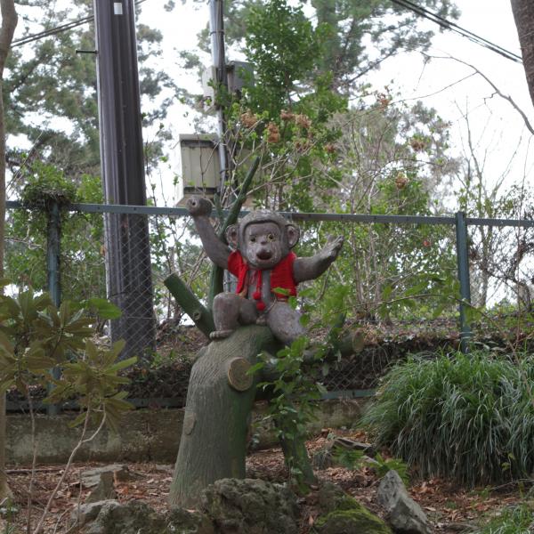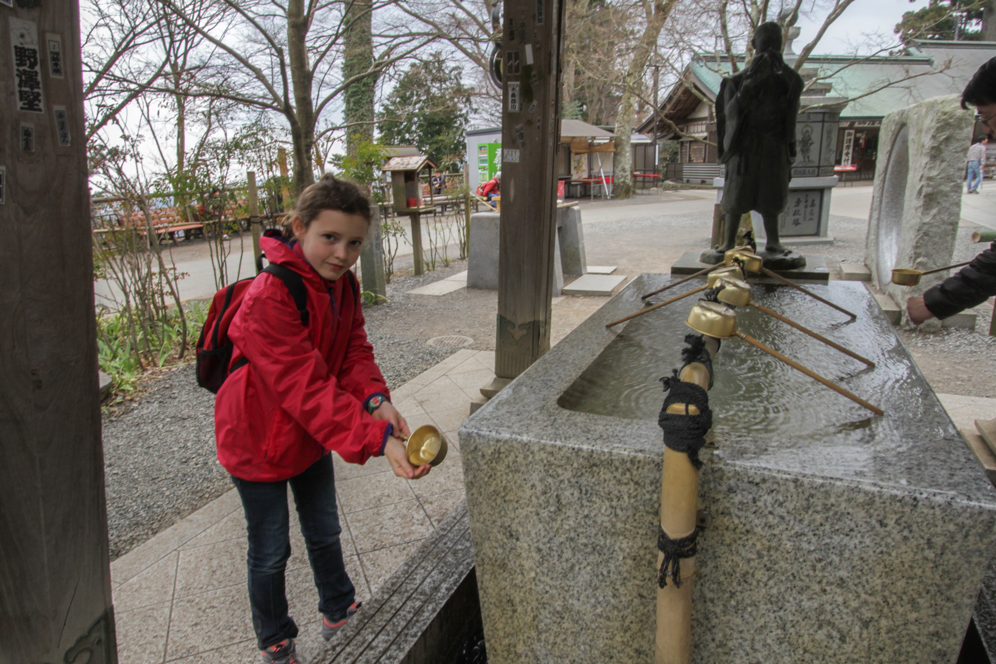 Arrivés à l’esplanade qui coiffe la montagne, l’air épais nous a privés de la vue sur le Fujisan et de l’ouest de Tokyo. Les sakura plus tardifs n’étaient pas éclos. Les écureuils volants nocturnes n’étaient pas de sortie. En revanche, un couple promenant un furet nous a offert le spectacle, et a rythmé la descente de Jade vers le funiculaire.