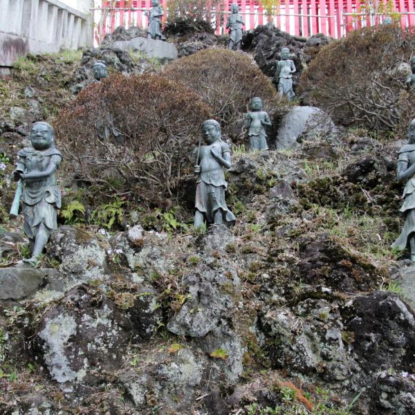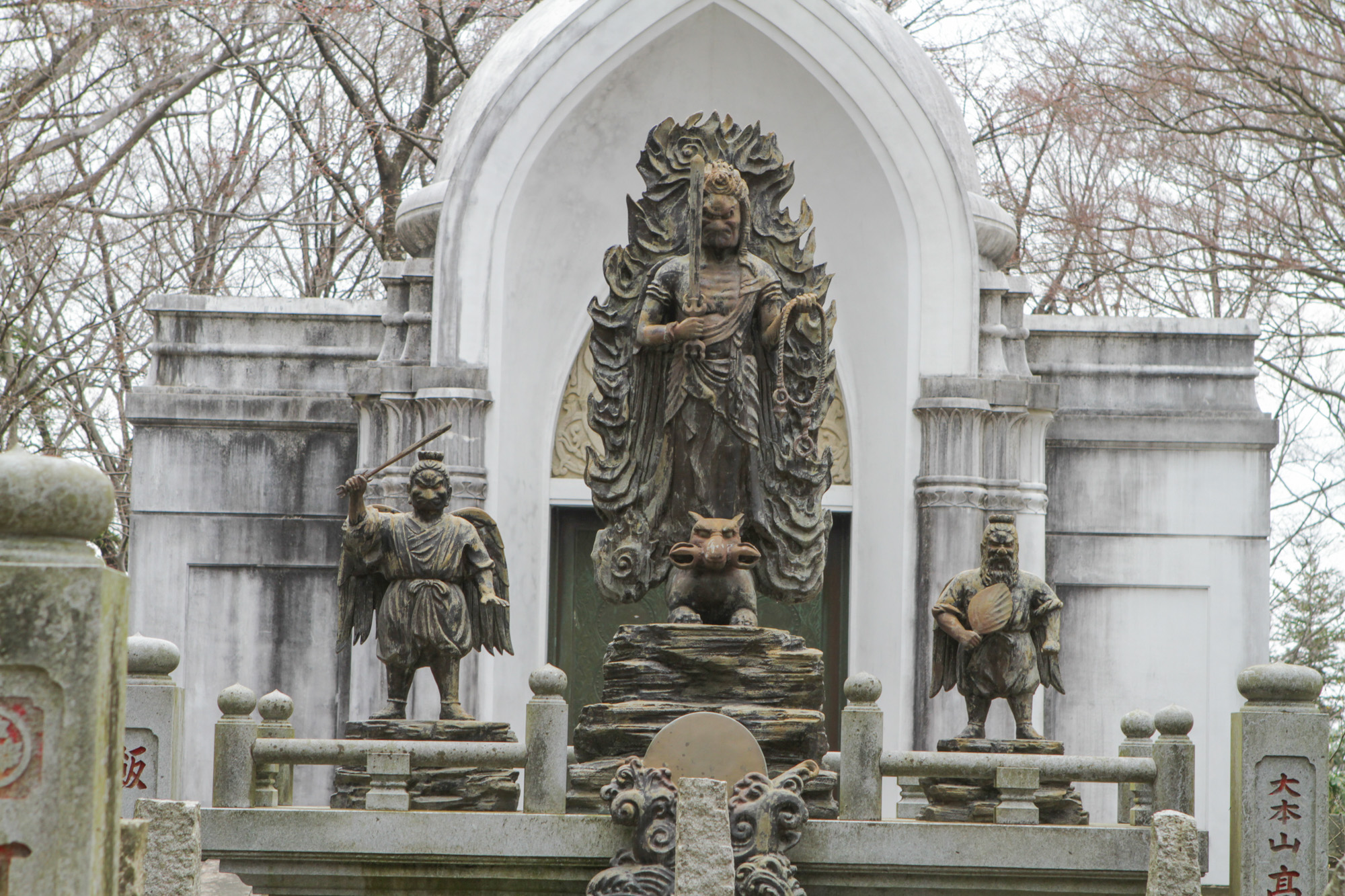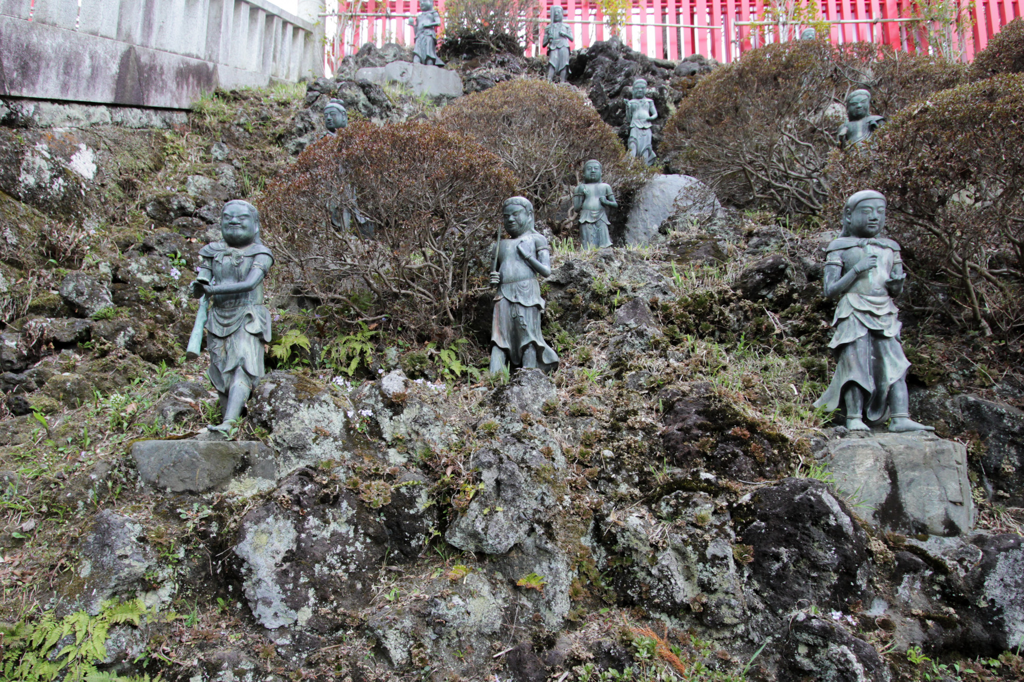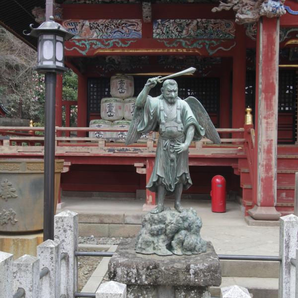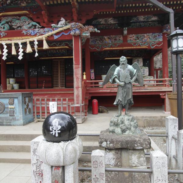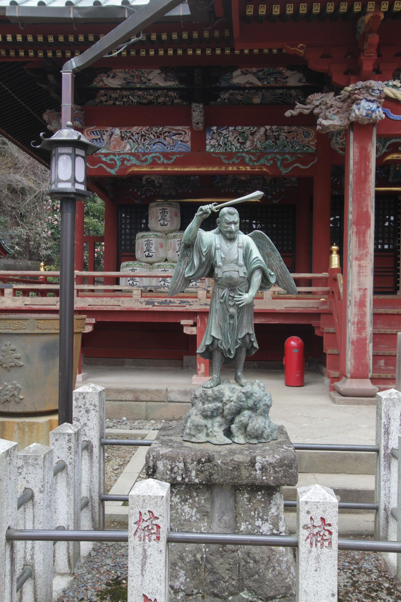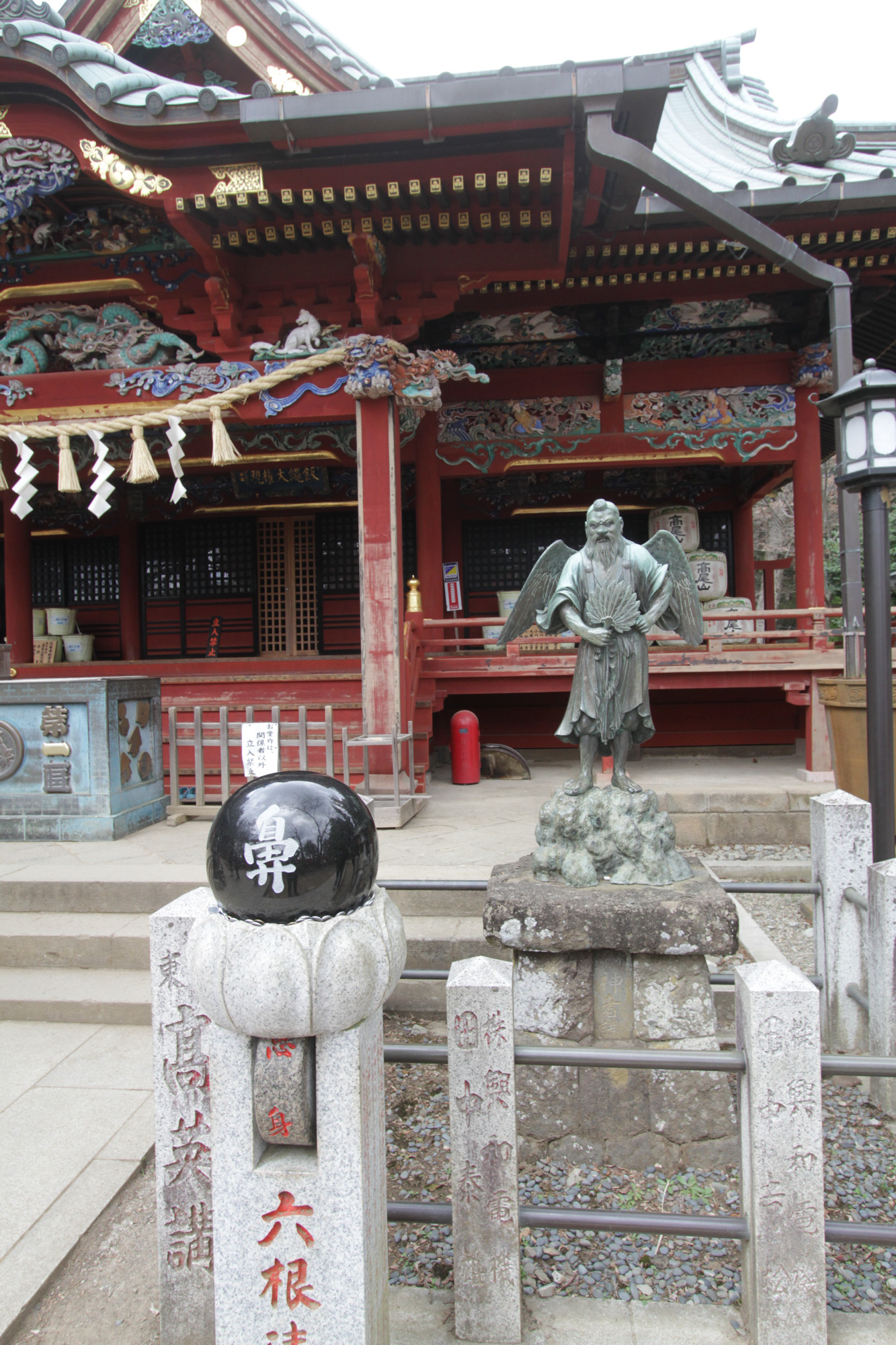Le Mont Takao est un haut lieu du pèlerinage shintō et bouddhiste (c’est d’ailleurs l’un des seuls lieu où les deux courants se rejoignent presque totalement), doté de trois étoiles au Michelin, ce qui impose désormais une propreté drastique ! Chacun reprend avec lui ses déchets. Il est constellé de statues : Kūkai, fondateur de l’école bouddhique Shingon, Jizo, protecteur des âmes défuntes des enfants, et les tengû, créatures protectrices de la montagne tantôt représentées par un visage humain dont le nez est excessivement long, tantôt en karasu tangû à bec de rapace.