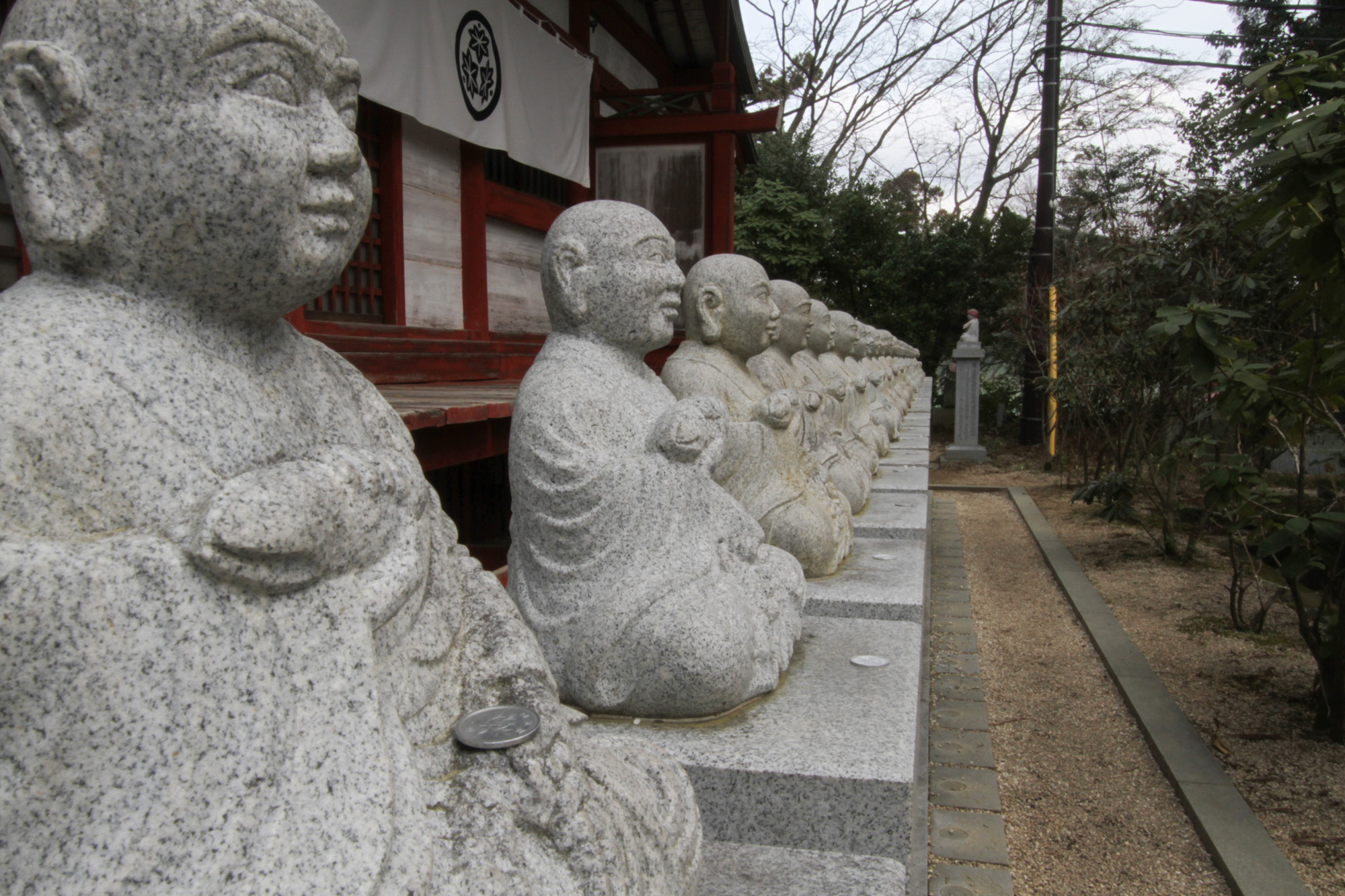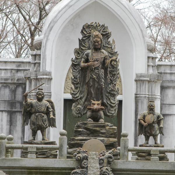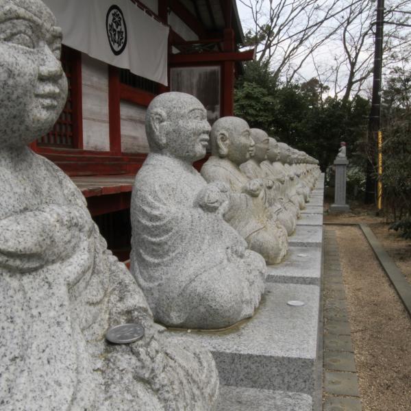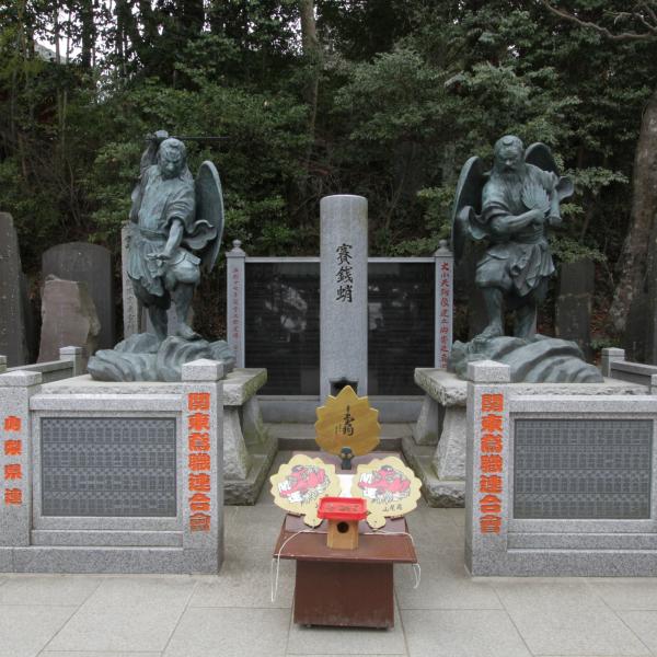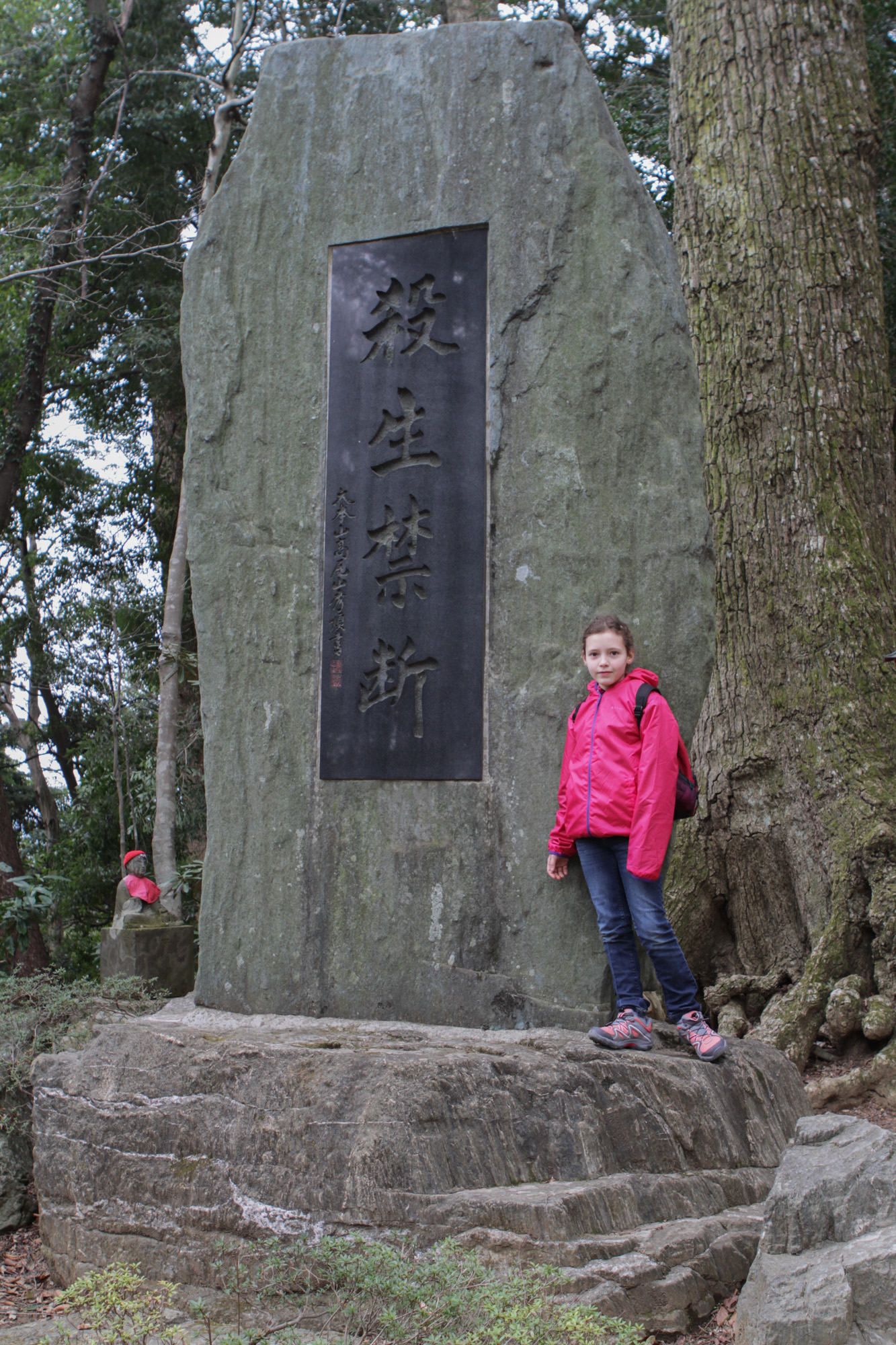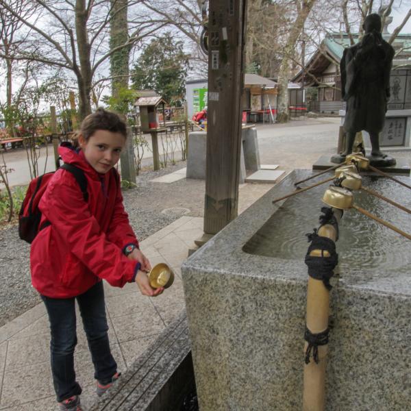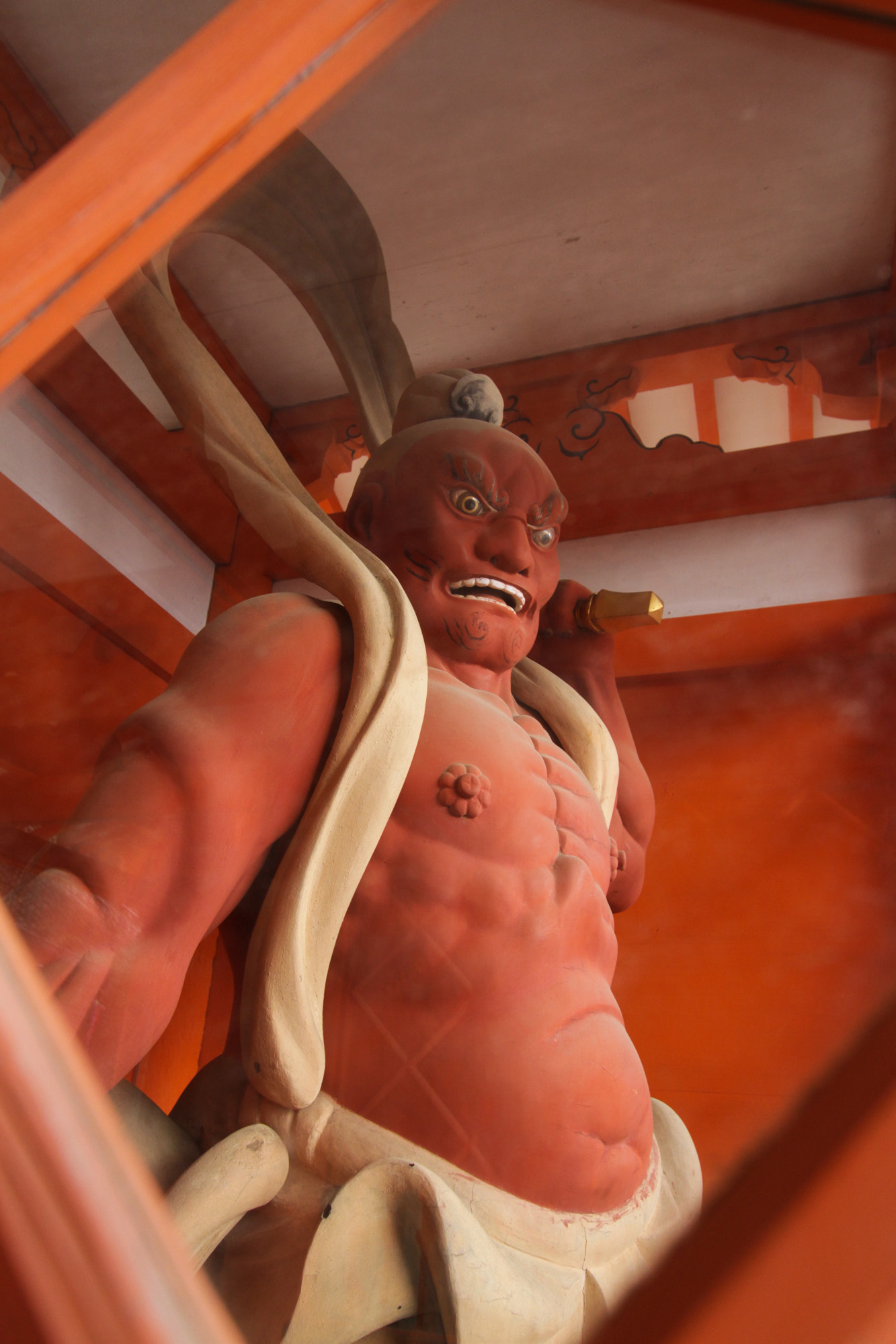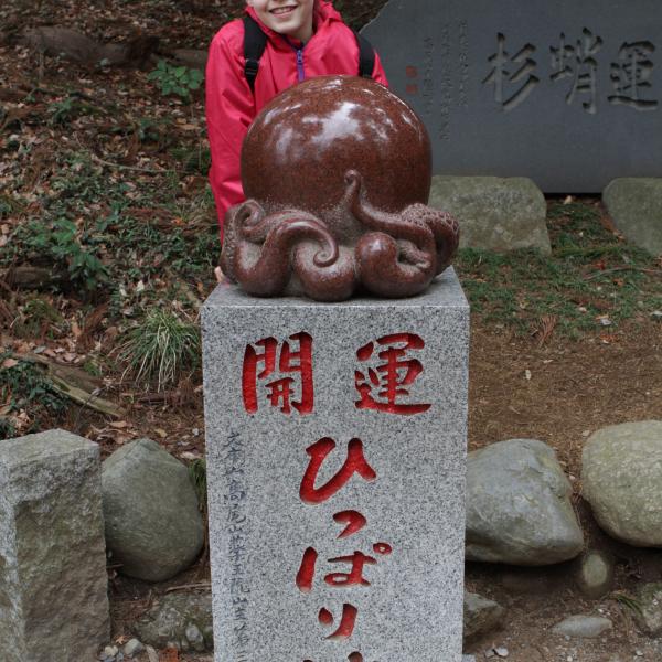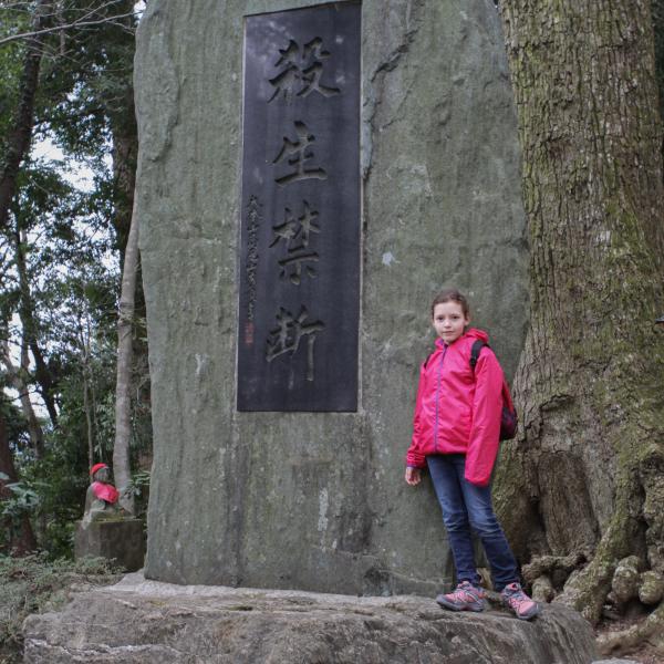 Le Mont Takao est un haut lieu du pèlerinage shintō et bouddhiste (c’est d’ailleurs l’un des seuls lieu où les deux courants se rejoignent presque totalement), doté de trois étoiles au Michelin, ce qui impose désormais une propreté drastique ! Chacun reprend avec lui ses déchets. Il est constellé de statues : Kūkai, fondateur de l’école bouddhique Shingon, Jizo, protecteur des âmes défuntes des enfants, et les tengû, créatures protectrices de la montagne tantôt représentées par un visage humain dont le nez est excessivement long, tantôt en karasu tangû à bec de rapace.